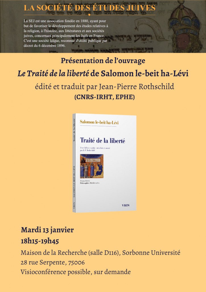 Présentation de l’ouvrage « Le Traité de la Liberté » de Salomon le-beit ha-Lévi, édité et traduit par Jean-Pierre Rothschild (CNRS)
